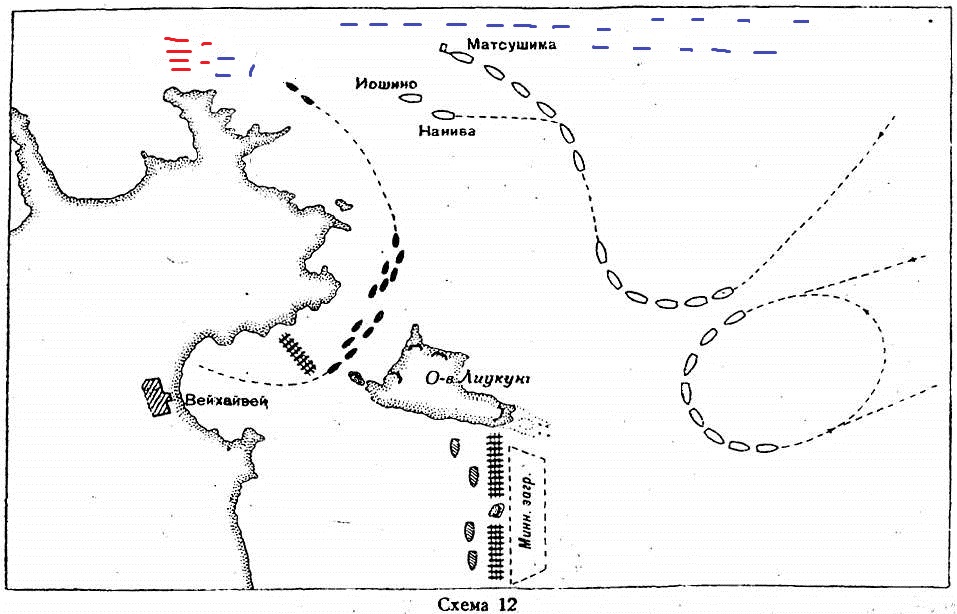 следующий день японцы грузятся и отчаливают в японию и только потом идет высадка англичан в вейхай и высадка русского десанта на остров.