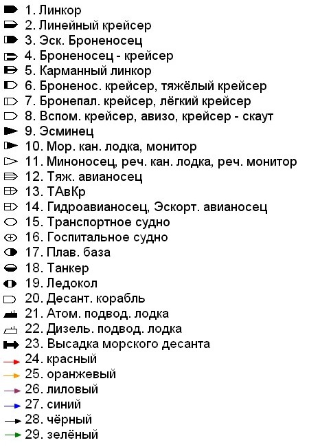 Сразу вопрос, такие условные обозначения норм? Нужно ли выделять карманники, броненосцы-крейсера и разделять подлодки?: