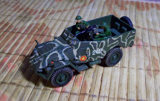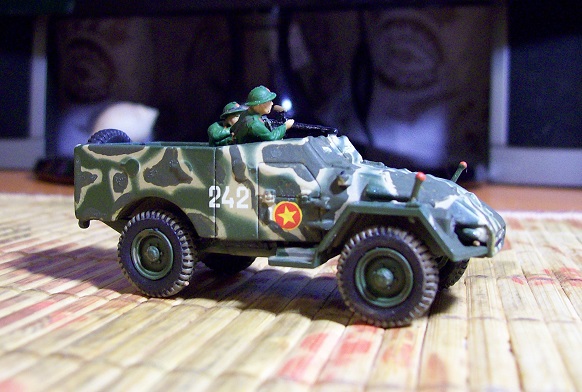 Опубликовано: 26 Dec 2014 Я танчики в 72-м люблю. Любой каприз! Извольте В этом масштабе обычно балуюсь переделками моделек журнальных серий ("Русские танки" и т.д.) Например, так после покупки выглядел журнальный БТР-40: А так, - после приложения моих кривоватых ручонок: В связи с невозможностью достать фигурки 1:72 северо-вьетнамцев, пришлось перекрашивать (и слегка "дорабатывать напильником") британцев времен ВМВ. Посчитал, что в таком масштабе английская каска-"миска" вполне сойдет за вьетнамский пробковый шлем. :grin: Поделиться сообщением Ссылка на сообщение Поделиться на других сайтах