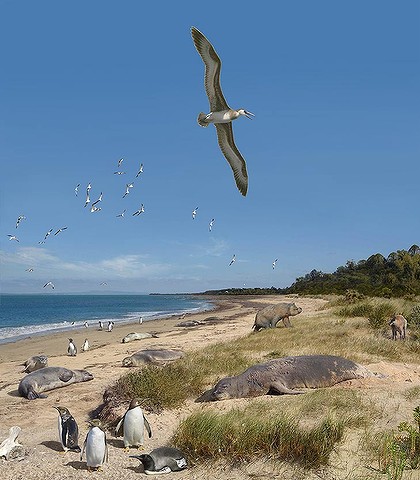 Кстати, о тамошних птичках. Вверху-по центру - пелагорнис. под чучелом которого профессор принимал Юла с Куто.