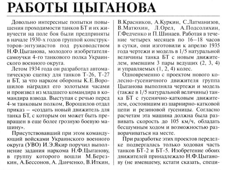 В таком случае не логичны шатания Цыганова по мелким заводам с БТ-ИС - задание шло с самого верха.