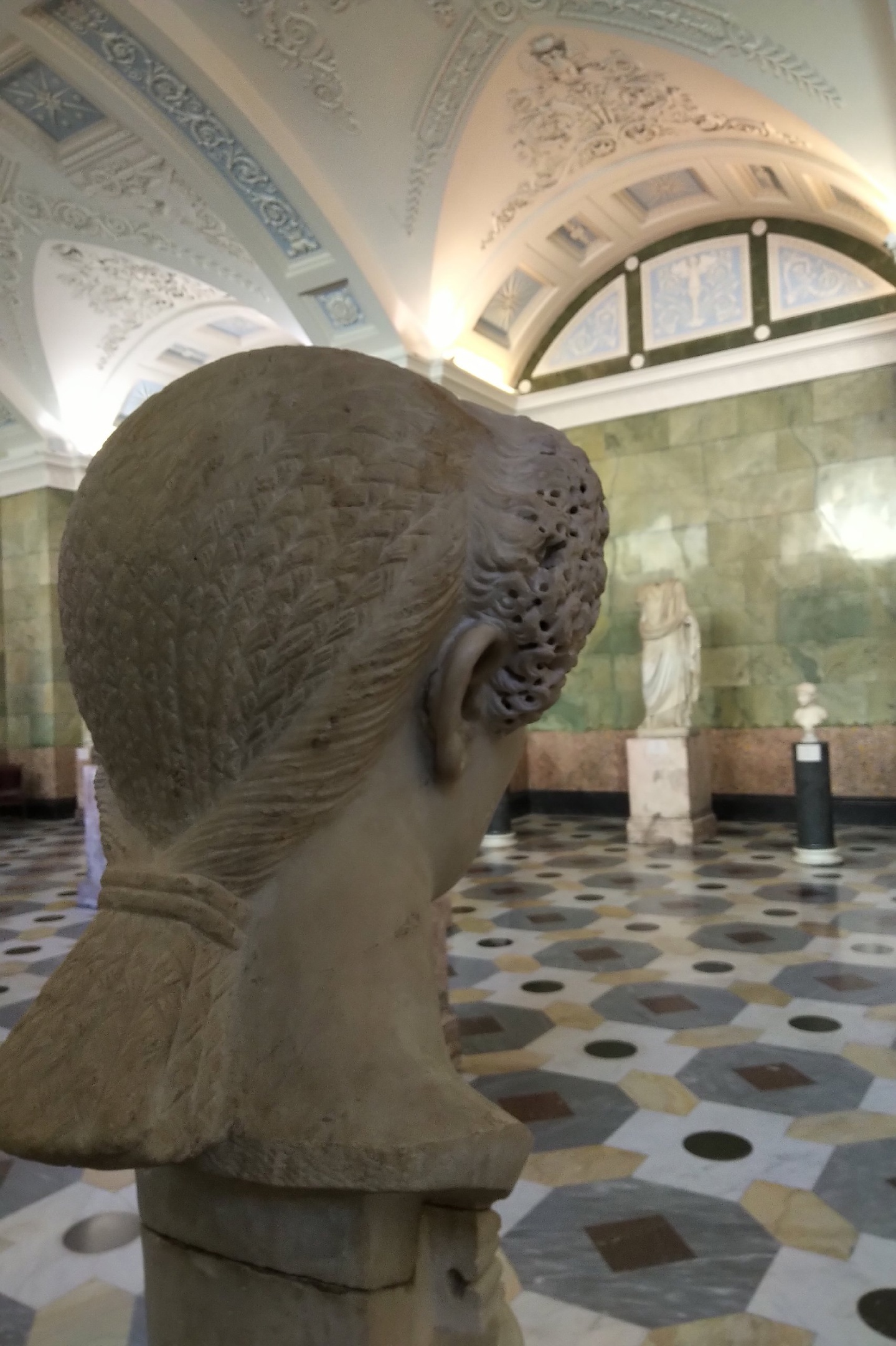 При этом для наблюдателя - прическа Домиции Лонгины (которую портретировали, скорее всего, либо как жену цезаря, либо как августу) выглядит скромнее, чем прически Агриппины Младшей или Поппеи Сабины.