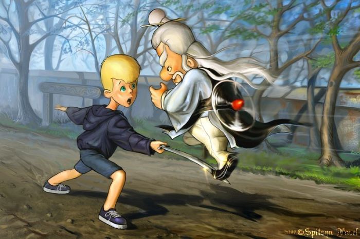 Вот интересно, почему в подобных сценах, во всех боевиках, ученик ни разу не пытался меч просто выдернуть?
