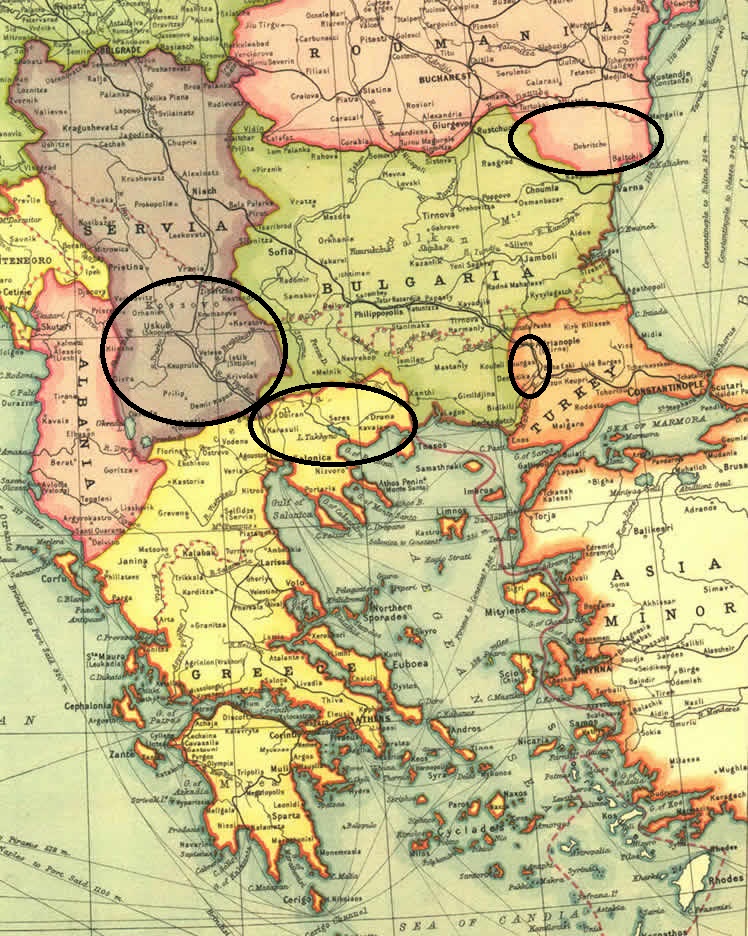 3. Греция и Болгария делят Фракию более справедливо. А то и - Константинополь Греция отбирает в ходе Первой Балканской.