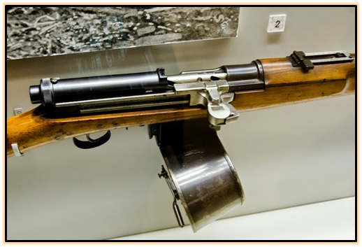 Похоже,первая модель,магазин- сбоку,с проталкиванием патрона к стволу..Вторую по людски сделели,патрон на прямую в ствол шел..