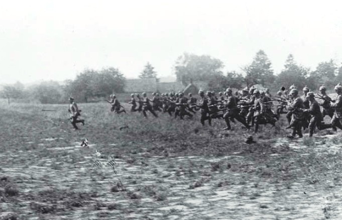 На моей фотке,рота,никак,в атаку идет.Тут- задавят..Так ведь 9 к 1..Таких- взвод встречать должен..ТРИ мадсена да Максимка взводный..Выкосят,как траву..