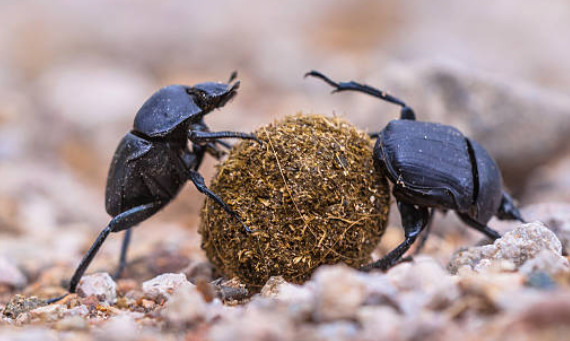 Реальные жуки - скарабеи катают шарик,чтобы отложить туда яички..