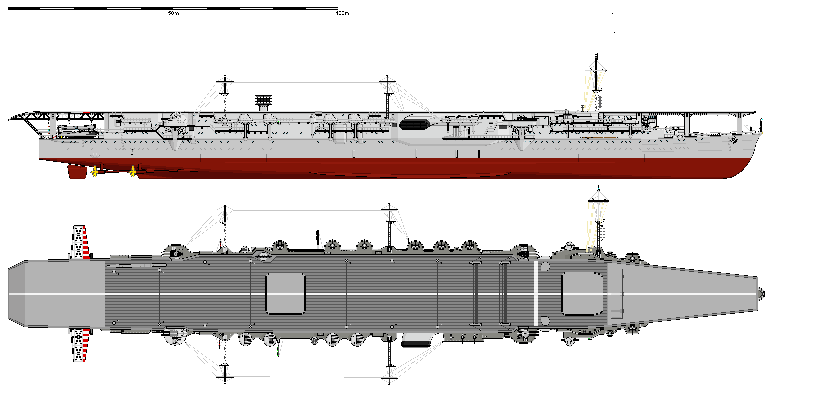 Length     overall 749 feet (Hull 718 ft) ((Flight Deck 742 ft)
