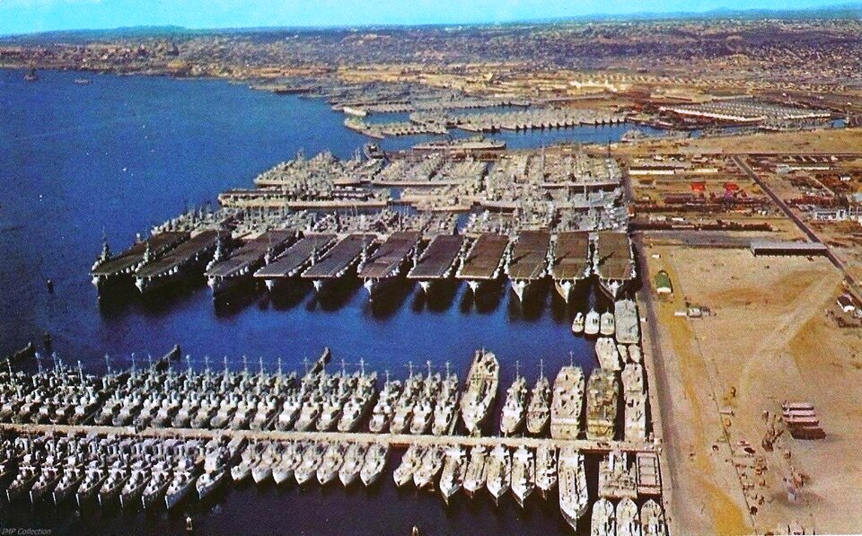 К концу войны в 1945 году ВМС США насчитывали около 6768 кораблей, включая 1200 крупных боевых ,