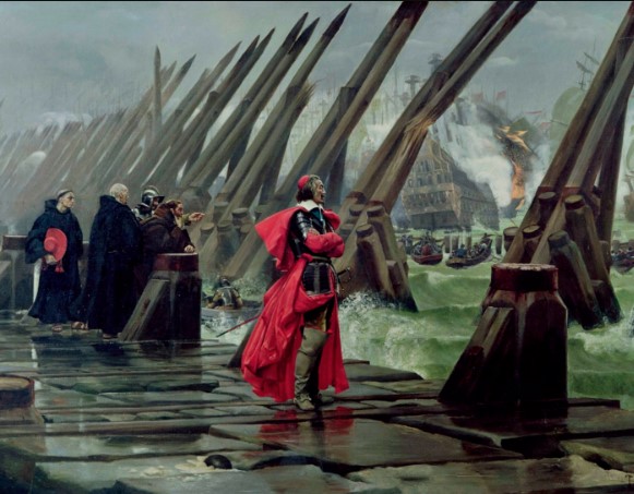 Существует достаточно известная картина "Кардинал Ришелье при осаде Ла-Рошели", вот  она: